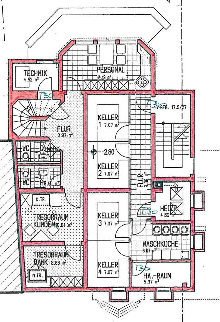 Im Erdgeschoss befindet sich eine großzügige Gewerbeeinheit mit ca. 163 m² Fläche, die sich durch einen großen, offenen Büroraum sowie zwei separate Bürozimmer auszeichnet. Im Untergeschoss stehen zusätzlich eine Küche sowie sanitäre Anlagen zur Verfügung – ideal für Büro- oder Dienstleistungsnutzung.