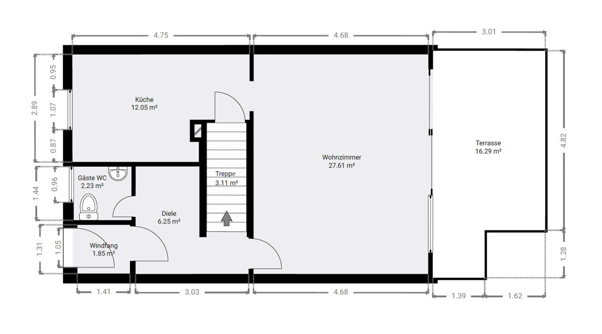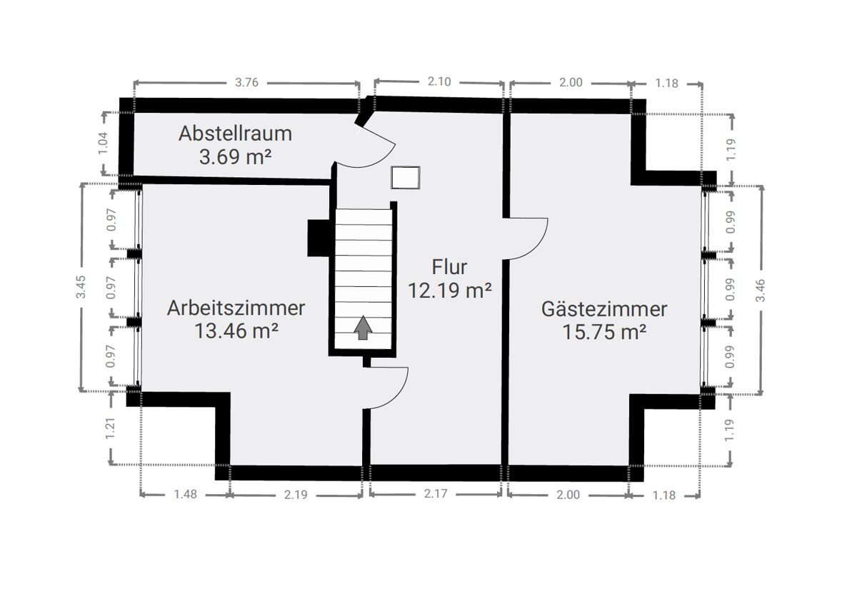 Ein Gäste-WC ist ebenfalls im Erdgeschoss vorhanden. Im Obergeschoss befindet sich ein Tageslichtbad mit Dusche und Badewanne sowie weitere Wohnräume. Das Dachgeschoss wurde vollständig ausgebaut und bietet zwei flexibel nutzbare Zimmer, die sich ideal als Schlafzimmer, Büro oder Hobbyräume eignen.