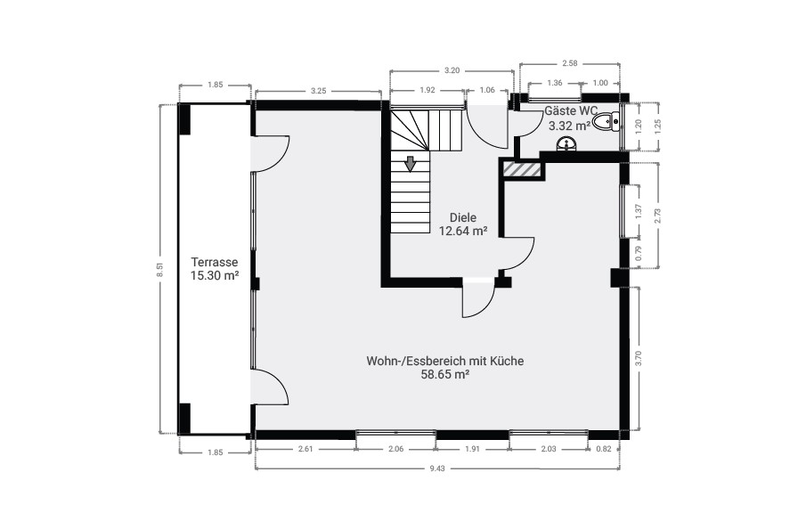 Besonders angenehm ist das Tageslichtbad, das mit seiner natürlichen Belichtung für eine helle und freundliche Atmosphäre sorgt. Zusätzlich stehen zwei Gäste-WCs zur Verfügung, was den Alltag besonders komfortabel macht.