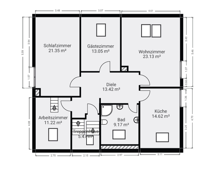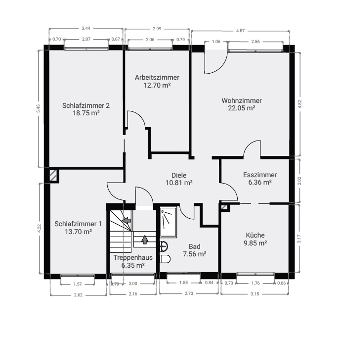 Die Wohnung im 1. Obergeschoss ist aktuell für 1.530 € kalt monatlich an ein Steuerbüro vermietet, was eine sofortige Einnahmequelle für Kapitalanleger darstellt – und gleichzeitig flexible Nutzungsmöglichkeiten offenlässt.