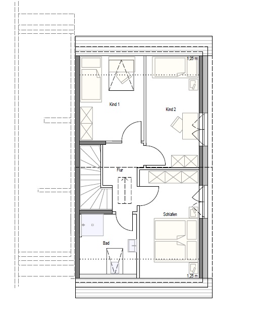 Im Obergeschoss erwarten Sie drei gut geschnittene Zimmer, die flexibel als Schlaf-, Kinder- oder Arbeitszimmer genutzt werden können, sowie ein modernes Tageslichtbad. Der zusätzlich ausgebaute Spitzboden bietet weitere ca. 28 m² Nutzfläche und schafft wertvollen Stauraum oder Platz für Hobby und Homeoffice.