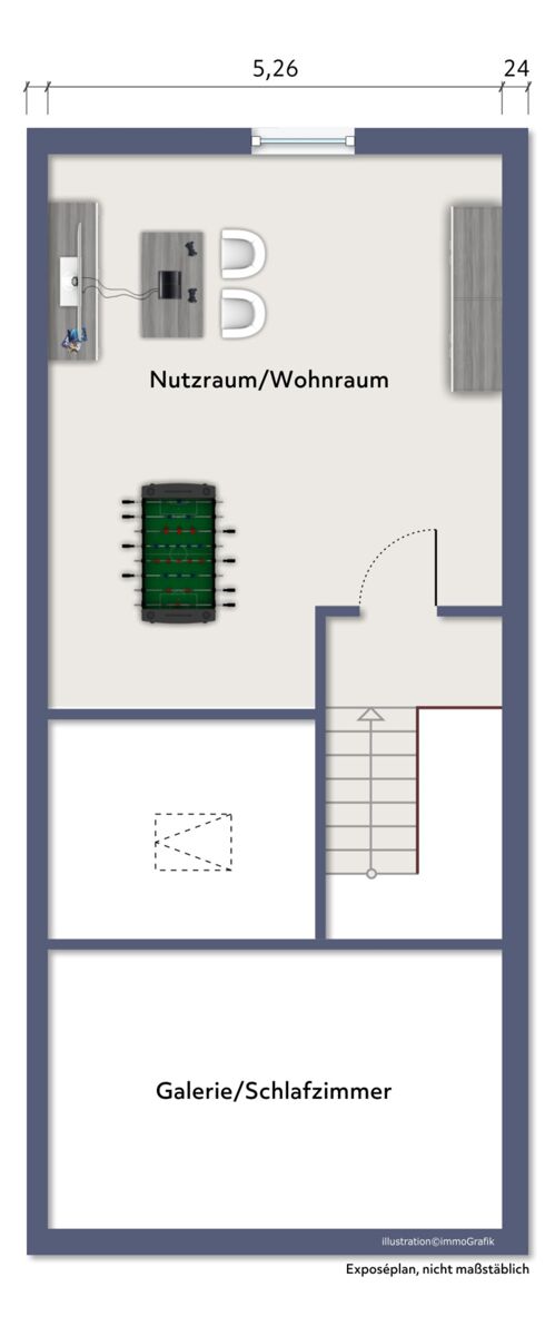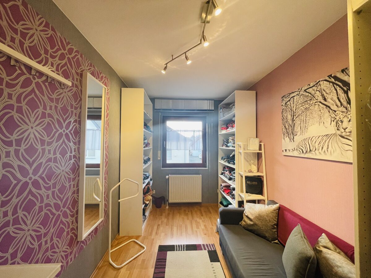 Im Obergeschoss stehen zwei Kinderzimmer sowie zwei weitere Schlafzimmer zur Verfügung. Diese Räume können je nach Bedarf als Schlaf‑, Kinder‑, Arbeits‑ oder Gästezimmer genutzt werden und bieten aufgrund der Anordnung auf den Ebenen verschiedene Nutzungsmöglichkeiten. Das Tageslichtbad im Obergeschoss ist mit einer Badewanne ausgestattet und ergänzt somit das Dusch-WC im Erdgeschoss.