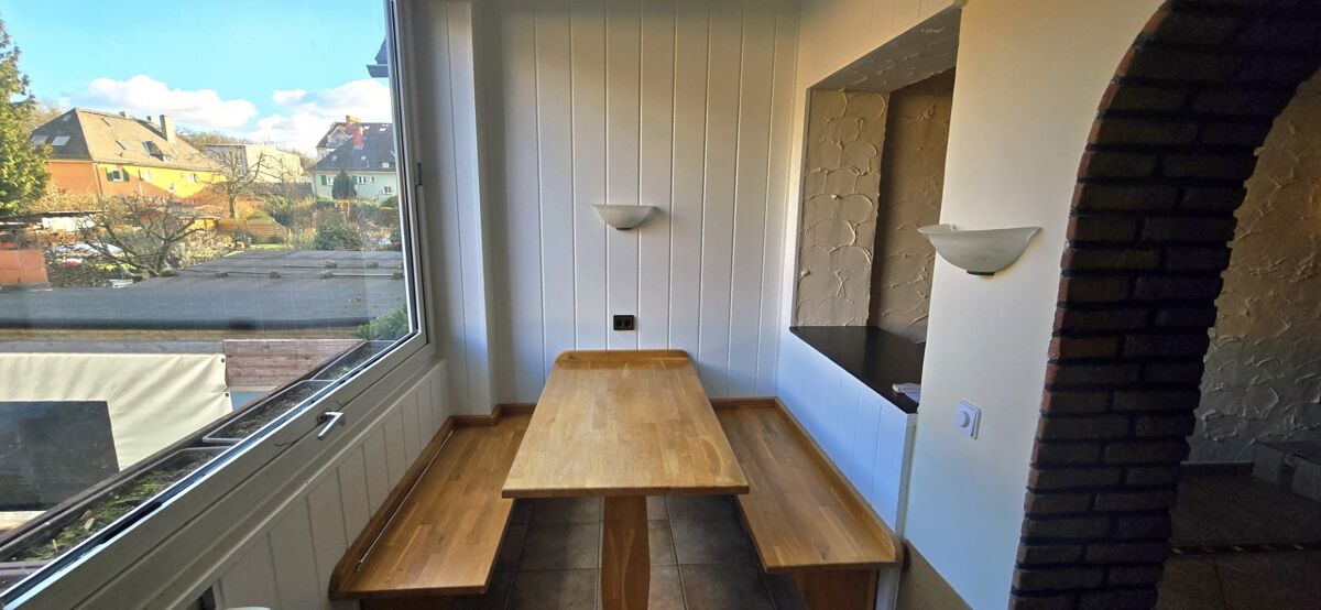 Im Erdgeschoss empfängt Sie ein heller Essbereich mit angrenzender Küche. Von hier aus eröffnet sich der Blick in den Garten. Zusätzlich sorgt ein Kamin auf dieser Ebene für eine angenehme und gemütliche Wohnatmosphäre.
